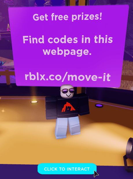 Once you enter the Island of Move experience, look for the interaction podium or the event NPC in the main lobby area. This location allows players to open the redemption interface and enter Roblox codes to receive event rewards.